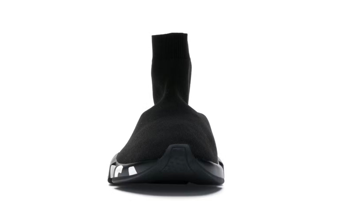 Nero/verde, altezza alla caviglia, stampa laterale con logo, punta smussata, caviglia stile calzino, soletta con logo e suola piatta in gomma.